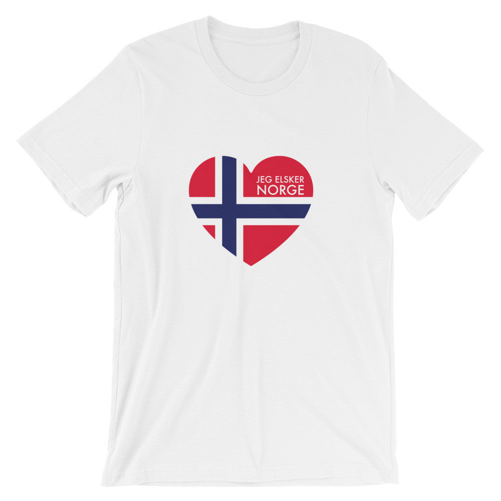 JEG ESKER NORGE (I LOVE NORWAY, in Norwegian) - Unisex short sleeve t-shirt